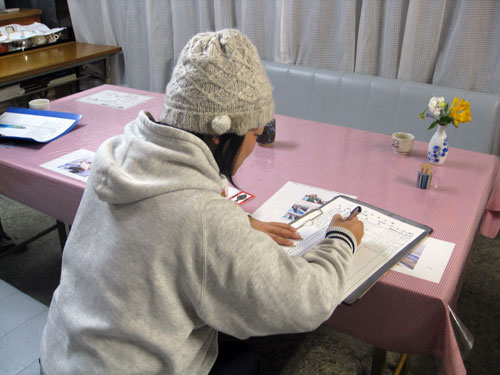 港へ着いたら、『幸丸』の船が繋留されている港左側へ向かった。「受け付け前に…」と、女将さんから聞いていた通りホウボウ船にクーラーボックスで席を確保した。『幸丸』では、常に複数の釣り物の船(この日も、他にオニカサゴとヤリイカが出船)が出ているので、乗り間違えには十分注意しよう。その後、待合所に寄って乗船料を払い、仕掛けを買う。乗船名簿は休憩スペースにあるので、忘れず記入しよう。