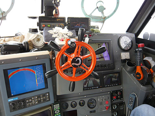 しばらく経って、何個目かの漁礁周りを流していた船長が、不思議そうに首を捻りながら「反応はあるのにビシを落とすと魚が逃げてしまう…」と呟いた。 “第七渚丸”は、魚群探知機は勿論、ソナーやその他の電子機器をフル装備した超ハイテク船。その電子機器を全て使いこなし魚の状態を高精度に分析しながらポイントにあてて行く船長なのだが、ソナーを見ると魚が逃げるように出て行ってしまうのがディスプレイから見えてしまった。「う~ん、どうしたもんかね?これは!?」しばらく考え込んだ船長は、自慢のソナーと魚群探知機の電源を落としてしまった。