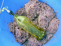 さて、外房エリアのイサキ釣りでは“お約束”がある。コマセビシの大きさは統一されており、必ずこれを使わなくてはならない。持っていない人は船宿の貸し道具が用意されている。私はこの日、コマセビシの上窓を半分開ける様にセットして使った。これで指示ダナを2往復するとコマセがなくなるくらいの調節になった。 用意されている付け餌はイカのタンザク。これを米粒サイズにハサミで切ってハリに付ける。また『長福丸』のオリジナル仕掛けは、ハリにカラーコーティングが施されていて空バリで使用しても釣れるとの事。活性の高い時間帯に手返しを上げるにはもってこいという仕掛けだ。