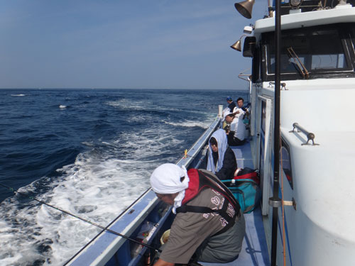 5時30分、「第十一早川丸」は早川元樹船長の操船で11人の釣り人を乗せて出港した。ポイントは洲崎灯台の真ん前、港から僅か1、2分。岸が近い。ドライバーショットで届きそうな距離だ。船長は慎重に旋回して投入合図を出した「水深は12m。ここは岩場だから根掛かりに気を付けて」。期待の第1投だ。