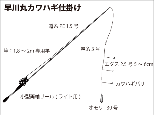 【カワハギ】予約乗合 料金:9,500円(アサリ剥き身・氷付) 事務所受付5:00、出船5:30、沖上がり12:00 |