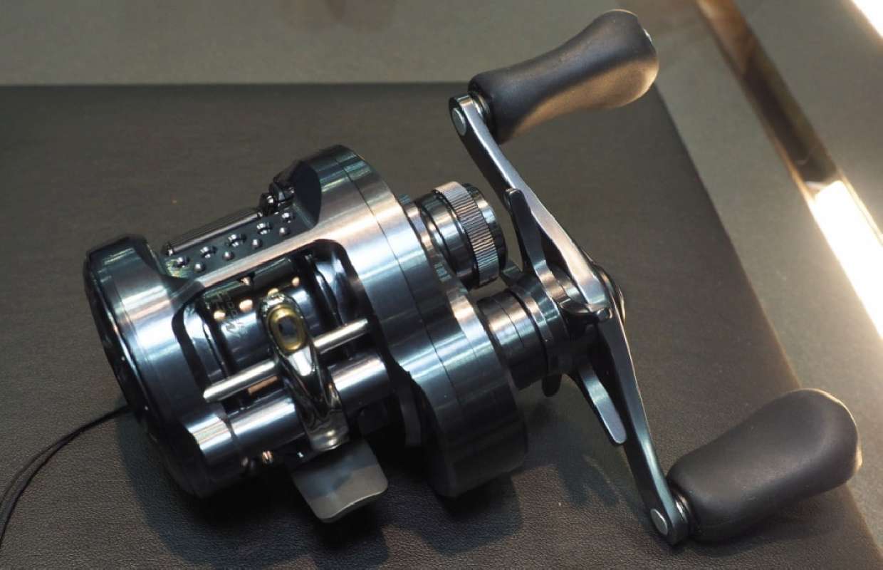 スプールと色以外は、内部構造も形状もカルカッタコンクエスト100HG、101HGと同じなので、インフィニティドライブ、マイクロモジュールギアなど、シマノの誇る頂点のテクノロジーが結集されている。基本性能には絶対の信頼感を持って使えるというわけだ。実際に会場でハンドルを回した印象は、違和感や異物感が全く認められない均一な巻き感。そして、この締まった黒というカラーの効果なのか、よりコンパクトに見えた。標準的なベイトリールでは投げにくくて、ベイトフィネスリールでは糸巻量が足りないと感じるルアーは意外に多い。そんなルアーをスイートスポットに設定したのがこのシャローエディションだと理解した。もちろん、フラットサイドクランクにも使いたいけれど、個人的には第一印象通り、中~小型トップウォーター用にも使ってみたい1台だ。