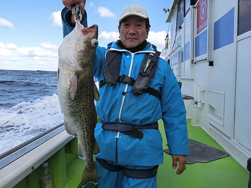 「大シケが3日続いて底荒れしていた。海水温も下がって底に濁りも入っていたようだったね。波も高かったのでメヌケの多い場所にも入れなかった。穏やかな日が続けば好釣果が期待できます。1月からはメヌケ中心になります」と、船長は明るい見通しをたてていた。その言葉を裏付けるようにナギに恵まれた12月10日にはマダラ5.3kgを頭にトップ11匹、メヌケも最大3.8kgでトップ6匹といった好釣果も記録された。