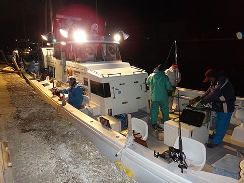 最終釣果はトップで55杯、そして54杯、52杯、50杯と続く。村杉さんは「7点掛けの他、6点掛けが4回あった」と“爆乗り”を振り返った。これからが南房総のヤリイカシーズン。ゴールデンウイーク頃になると、“パラソル級”も交じり、束釣り(100杯)も夢では無い。
