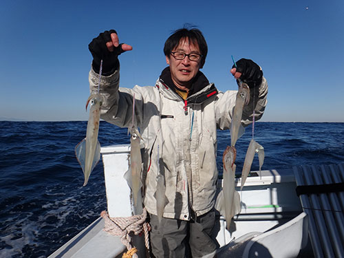 いよいよ、本格的なヤリイカシーズンがやって来た。1月に入ってシケが続き、出船出来ない日が続いていたが、ここに来て天候も釣果も安定してきた。小型のメスイカに交り、大型のオスイカも入って来たとの情報。千葉県・南房総の海に一足早い春がやって来た。18日(日)、多点掛けに期待し、南房総・白間津港『松大丸』の船に乗った。