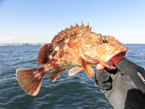 スポッと一気に餌を吸い込むような状況なら硬めの竿のほうが合わせも効くし手返しも早い。しかし、餌の端を咥えてじっとしている低活性状態では、食い込みのいい軟らかい穂先がモノをいう。竿はできれば何本か用意して、その日の条件や魚の食いで使い分けるのが理想だ。結局、14時半に納竿。トップは左舷トモのベテラン氏で32尾。前半の悪条件を考慮すればまずまずの成績といえるだろう。“ツ抜け”出来れば御の字と言われたかつてのカサゴ釣りからすると、確かにここ数年で状況は変わった。いいことばかりではないのは百も承知だが、これも暖冬がもたらす影響の1つなら、その恩恵を享受しようではないか。