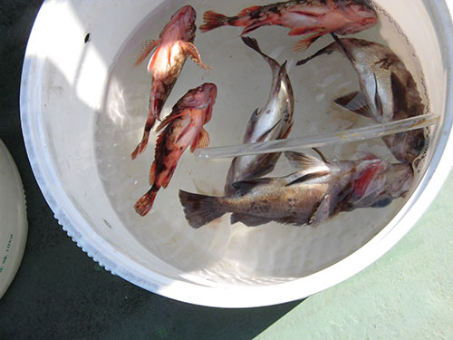 潮温の関係か、潮の流れの関係かメバルの活性が低い。船長も「魚探にはポロポロ魚影が出るけど群れも小さいし口も使ってくれないね、潮色も芳しくないね」と思案顔。その後、南本牧沖、小柴沖、八景沖と場所と水深を変えながら熱心に移動繰り返したが、中々メバルにめぐりあえない。