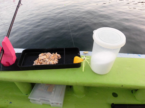 カワハギ釣りは非常に玄人受けする釣りでもある。言い方を変えればそれだけ奥が深い。それは早くも道具選びの段階から始まる。カワハギにアピールするための様々なツールが用意されていて、道具箱はさながらジュエリーボックスのよう。さて、その日の当たりは何なのか?どの“ジュエリー”がカワハギに最もアピール出来るのか?カラフルな仕掛けを吟味しているアングラーを後ろから冷静に見ていると微笑ましい。基本的な仕掛けは以下に説明したが、カラフルな集魚板やビーズと組み合わせた中オモリなどを付けても、アピール効果になるはずである。