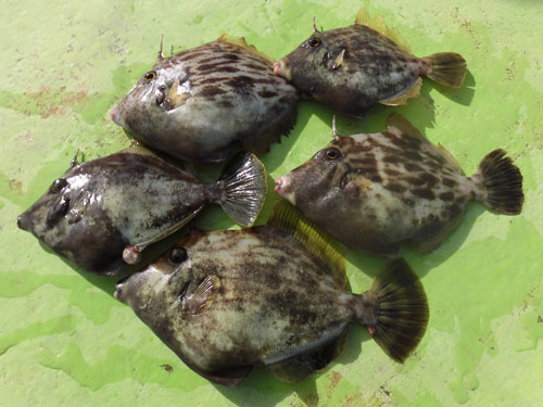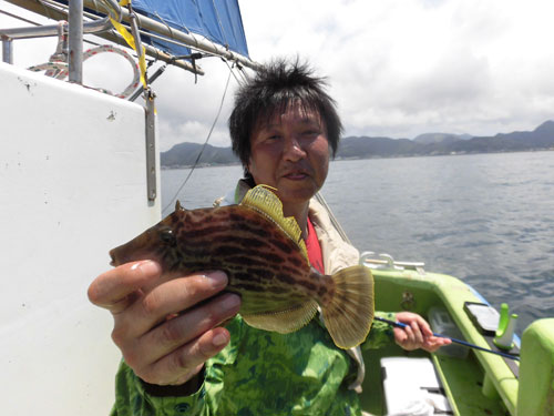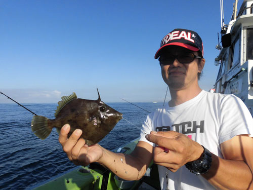 魚からのアタリはひっきりなしに訪れる。“餌取り名人”の異名を持つカワハギをいかにハリ掛かりさせるか。そして、そのアタリの大半は、カワハギ釣りの定番“外道”のベラやトラギスからのアプローチでもあるので、いかに“本命”へアピールするか。特にこの日、ベラの猛攻は凄まじいものがあった。その猛攻をどうかわすかが数を伸ばす肝となった。 最終的にこの日のカワハギへの効果的なアプローチを見つけた3人の人が“ツ抜け(10匹超え)”を達成。夏らしく、小型のいわゆる“ワッペンサイズ”はほとんど交じらず、良型カワハギを中心としての釣果なので、非常に楽しむことが出来た。シーズン最初から夏カワハギは熱気が最高潮。サイズも十分に楽しめるこの時期から、今後は秋に向けて数も出るようになってくる。夏の暑さを吹き飛ばす熱いカワハギ!お勧めの釣り物です!
