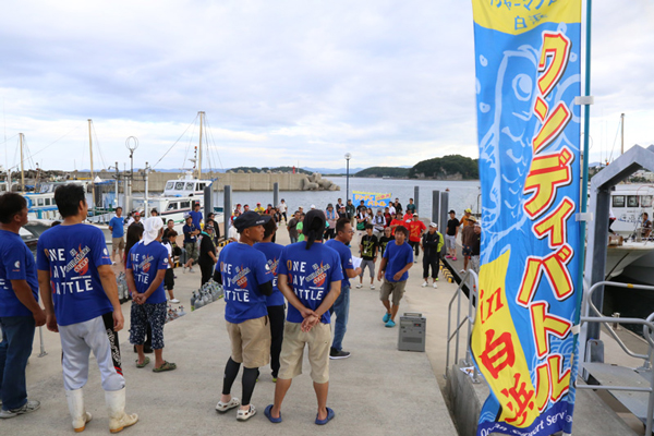 9月3日にはフィッシャーマンズワーフ白浜で、遊漁船10隻が参加した『ワンデーバトルin 白浜2016アンダーベイト大会』が開催されました。2枚潮の悪条件下、11.5kgの大ダイを釣り上げた船や、ハタの5~8kgを釣った船もあり大盛況でした。これから11月ごろまで(年末まで釣れ続いた年もあります)楽しめる白浜沖の“アンダーベイト”ぜひ大物を狙いにお越しください! お待ちしています!」。
