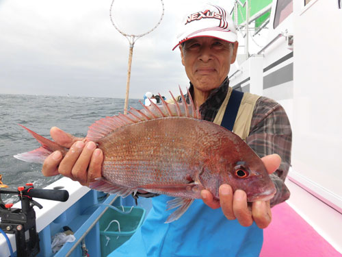 この日の竿頭は、道具をLTに持ち替えて3シーズン目と言う恩田豊さん(江戸川区)。「昔は東京湾ばかりだったけど、こっち(外房)にはこっちの魅力がある」と『臼井丸』に通う常連さんだ。次第に強まった風やウネリにも負けず、仕掛けの入れ替えやタナの取り直しをマメに繰り返す努力で、2kgオーバーを頭に7匹という見事な釣果へと結びつけた。