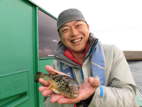 静かな誘い下げから、合わせが決まると一転して動の釣りとなるアカメフグ。大型ほど、合わせを入れた直後、底へ張り付く重鈍な引きを見せる。その体躯、風体に似合ない、上品な食味が身上のアカメフグは、処理師免許を持ったスタッフが捌いてくれる。この冬、薄切りにした刺し身を数枚一緒に、熱燗で楽しんでみてはいかがだろう。