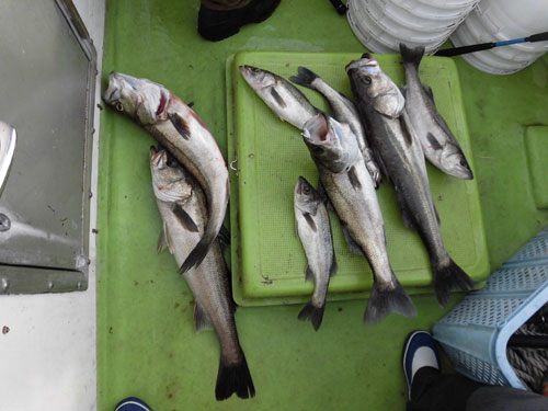 開始早々…正直ビックリした。20本の竿が出ているわけだが、いたるところでシーバスが竿を曲げている。一体同時に何本の竿にシーバスがかかっているのだ?という状態。しかし、残念ながら、ここのポイントは30cm前後のセイゴサイズが多くて一流しで終了。次なるポイントでサイズアップを狙った。