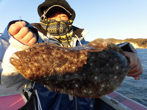 今年はイワシが少ないため、浅場の釣りがメインになると言う大野利広船長。コツは根掛かりをしないようにマメにタナを取ることと、横に走るのでサメと間違ってラフに扱わないことだそうだ。この日も船縁でハリス切れするシーンがあり、まだまだ大物の気配が漂う岩和田沖。根周りのアジを食べている寒ビラメは、身も締まって脂のまわりも実に程よいので、是非ポン酢と紅葉おろしでご賞味頂きたい。風光明媚でアタリの取りやすいこのエリアのヒラメ釣り。あなたの釣り自慢のページを増やすには、格好の機会かも知れない。