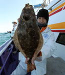 その後も船中ではポツポツとアタリは続き、定刻の11時30分に沖上がりした。ヒラメの竿頭は3枚が3人で、残念ながら10人中オデコが5人出てしまったが、それなりにアタリはあった。ヒラメにオデコは付き物。また次に期待してもらいたい。それにしても釣れたヒラメのサイズが良かった。船中で1㎏以下は2枚だけ。私も1.5㎏級を追加し1~1.5㎏3枚に59㎝のマゴチと十分な釣果に恵まれた。肉厚良型の“寒ビラメ”は今が一番熱いシーズン。イワシの群れが回遊する大原沖に出掛けてみてはいかがだろうか。