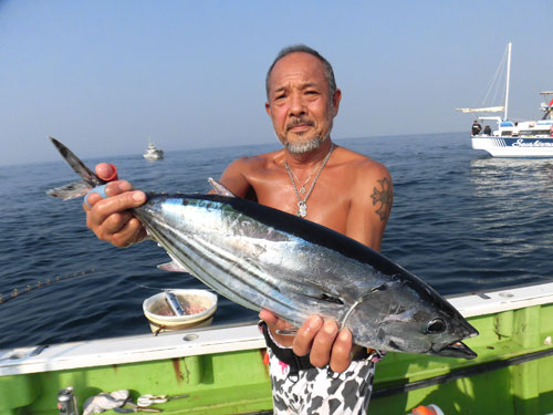 「初日が芳しくなかったので心配していましたが、今日は近場で食い気もあって型も良くお土産になってよかったです。今後は群れが入ってくる時期ですので、希望が持てますよ。キハダも周りで釣れているので、巡り合えればファイトを見せてくれると思います。ハリスを状況に合わせて14~18号と使い分けるのが釣果を上げるコツですね。ライントラブルに気を配ることも必要です」と船長。