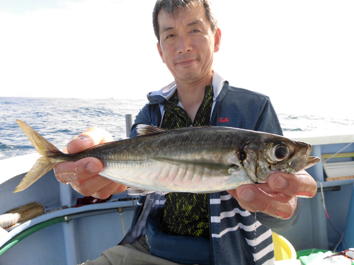 波もなく穏やかな海を走ること50分程で寒猫根に到着。この日、小笠原のはるか沖合を通過した台風8号の影響か、大きなウネリが海面を渡っていた。警笛を合図に水深110mの釣り場からスタート。間もなくアタリはあったが取り込まれたのはゴマサバ。この後も流し変える度に良型のサバやアジが上がるのだが、アカムツからの魚信は無い。やや弱気になりかけた6時17分、水深130m前後の釣り場で紅一点の岡田さん(佐倉市)がリールで道糸を巻き上げてから底を取り直す“巻き落とし”で、オモリの着底と同時にガツ、ガツ、ガツ!と独特のアタリを出した。慎重なファイトの末に海面へ浮かび上がったのは38cm、1㎏弱の良型アカムツ。難しい状況でようやく掴んだ1匹に「やった!結構大きいわ」と喜びもひとしお。それから間もなく、お隣の塚瀬さん(成田市)も良型を取り込んだ。普段はジギングなど海のルアーフィッシングを楽しんでいると言う塚瀬さん。「アカムツは3回目。犬吠埼ばかりで波崎の“夏アカムツ”は初めて」とのことだったが、浅場のテクニカルな釣りが醍醐味の寒猫根にも、良い思い出が刻まれたことだろう。