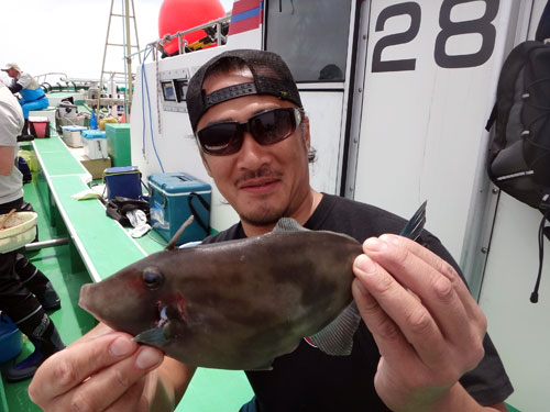 時計が9時を回った頃、シコイワシに紛れてこの日2尾目のマダイが、先程の人にヒット。小型だが価値ある1尾。その後、同じく葉山沖の根周りのポイントでメジナが釣れ、右舷ミヨシの2人にもメジナがダブルヒット。この釣り人も嬉しいことに釣りビジョンの大ファンだと言う。TVは勿論のこと、「プレミアムマガジン」も熟読、いつも参考にして頂いていると言う。「釣れたら写真を載せますんで!」という約束が果たせたのも嬉しい限り。
