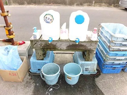 「長いシケ休み」としたのはちょっとした布石、それは後述するとして、『大貫丸』の“エギタコ”は港に午前4時30分集合。場所は日立久慈港の北側の防波堤だが、具体的には記事末の『大貫丸』HPの「アクセス」のページに詳しく載っているので参照してほしい。車は船前の壁際か防波堤手前の駐車場に停める。集合時間になると、船長や女将が到着。受け付けに明かりが点いた。岸壁には一つテンヤ・マダイ船の「第五大貫丸」が係留され、エギタコ船の「大貫丸」はその外側。軽トラックから氷を貰い、5時に出船した。