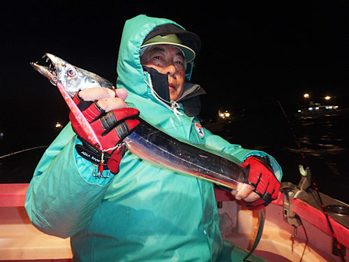 | 【料金】タチウオ船 (ルアー)8000円(氷付)(予約乗合) (餌)9000円(餌・氷付) (早夜船)午後4時集合、午後4時半出船、午後10時帰港 (深夜船)午後10時集合、午後10時半出船、午前4時帰港 |