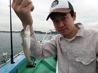出掛けたのは6月23日(土)。出船時間は朝7時半だが、予約客全員が集まれば7時過ぎには出船すると聞き、6時半には受け付けを済ませた。この日は、親子連れや友達同士、ベテランさんなど私を含め14人が集まり、飯田和仁船長操船の「第十八萬司郎丸」は7時過ぎに岸壁を離れた。釣り場は航程約5分、江ノ島沖の水深25mラインからスタート。「台風4号の影響で浅場は底荒れしていて厳しいかも?まずは深場から探ります」と船長。そして開始後間もなく、“定番ゲスト”のヒイラギやメゴチに交じり、ようやく“本命”シロギスがポツポツと顔を出し始めた。