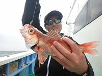 その後、浅井さんは1kg級のメダイ、良型アイナメを追釣。右舷胴の間では納竿間際の“本命”2連発等もあり、船中7人全員が型を見て沖上がりの12時半を迎えた。竿頭は“抱卵アカムツ”36cmを含む3尾を釣った木村義則さん。山中さんも見事2尾を釣り上げた。「今日は全体的に型が小さかったね」と船長の不満そうな言葉の裏には1kg超の“抱卵アカムツ”が今後十分期待できる!と言う意味が込められているに違いない。12月まで狙えるアカムツはこれからが本番。13日には竿頭8尾、2番手7尾、3番手6尾が2人と好釣果が出ている。
