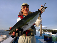 竿頭は3連発を2回達成した比嘉芳則さんの8尾、人生初めてのワラサ釣りの有村さんも見事4尾釣り上げた。帰宅後、ワラサを“照り焼き”にしたが脂の乗りも抜群でその味は絶品だった。現在は2~3kg級中心に時折イナダ級も交じるが、今後は4~5kg級が中心となり、初島沖は益々熱気を帯びて来る。是非出掛けてみて頂きたい。