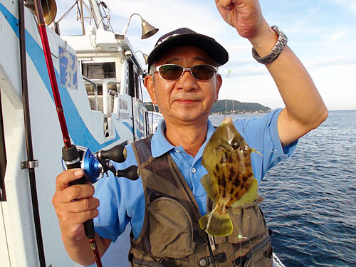 館山湾内には、小さな根(岩礁)が無数に点在しており、カワハギ釣り場には事欠かない。しかし、これだけ潮温が高いとまだ群れはバラバラに散っている感じで、何処でも船中4、5尾釣れると、招かれざる“ゲスト”が連発した。それでも8時を過ぎる頃には、“ツ抜け(10尾)”する人も現れ、アタリも引っ切り無しにあるので、緊張感のある釣りが続いた。