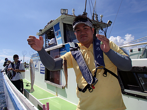午後1時を過ぎる頃になると、潮が流れ出し、再びシロギスのアタリが出始めたが、同時にイシモチ(シログチ)のアタリが頻繁に出始めた。特に後半の小1時間は、イシモチが入れ喰いになってしまい、シロギス交じりのイシモチ釣りになってしまった。それでも午後2時半過ぎの納竿までに35尾(船のトップは52尾)のシロギスが釣れ、イシモチも20尾近くに達した。釣れたシロギスのサイズは、大半が20cm前後から23、24cmの良型揃い。しゃぶしゃぶ、天ぷら、フライ等の食材として十分な量を確保出来た。