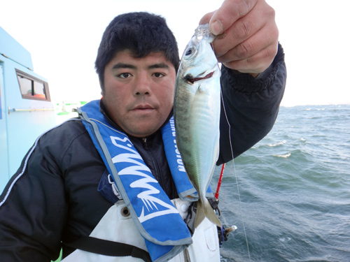 定刻の11時に沖上り。風も強くなり海上には?“ウサギ”どころか“ヒツジ”が駆け廻り出した。そんな悪条件の中でもアジ&シログチが果敢に相手をしてくれた。全員満足の様子。アジの方が多かった人、シログチが多かった人、それぞれの思いが釣果に出た。数えてみるとアジは5~8尾。シログチは4~20尾。殆どの人が両方合わせると20尾以上釣っていた。荒ぶる海の中での釣果を考えれば、充分だろう。