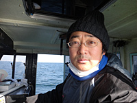 午前7時の定刻に出船、平潟湾を抜け、八景島のジェットコースターを見ながら、ポイントの八景沖に着いた。「良いですよ、やってみましよう。水深は30m。オモリがトンと着いたら1m上げ、コマセを撒きながら3mのタナでやってみて。青イソメは3cm位垂らして」と、この日の舵を握った黒川俊之船長の丁寧な説明があってスタートした。