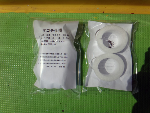 朝6時50分出船、15時頃沖上がり。 料金:¥9,000-(餌:サイマキ5匹・氷付き) サイマキの追加は1匹100円 女性・中学生以下割引あり 仕掛けは船内で購入可(2組入り300円) |