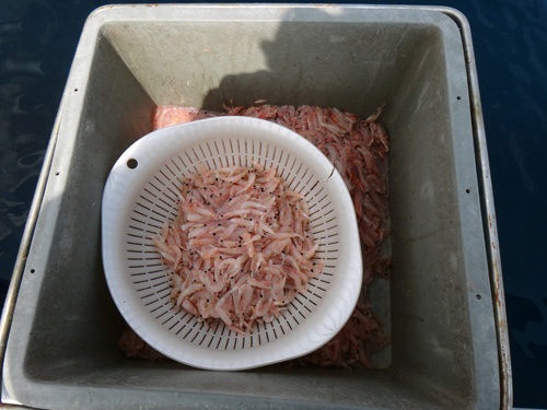 『魚磯丸』での指示ダナは海面から。狙う水深は30~40mと浅場が中心。時には10m未満の水深をアナウンスする事もあると言うから驚きだ。若船長に基本的な誘い方を聞くと、「お勧めのハリスの長さは10mです。私が20mとアナウンスしたら30mまで落として、20mまで一気に誘い上げて下さい」と丁寧に教えてくれた。大きく素早く誘い上げる事によって、縦にコマセの帯を作る事が出来、それによってマダイのタナを上ずらせる事ができるそうだ。コマセカゴによっては、落としている最中にコマセが出てしまう物があるため、若船長の推奨はステン缶のMサイズ、サニーカゴならLサイズまでを使用したい。