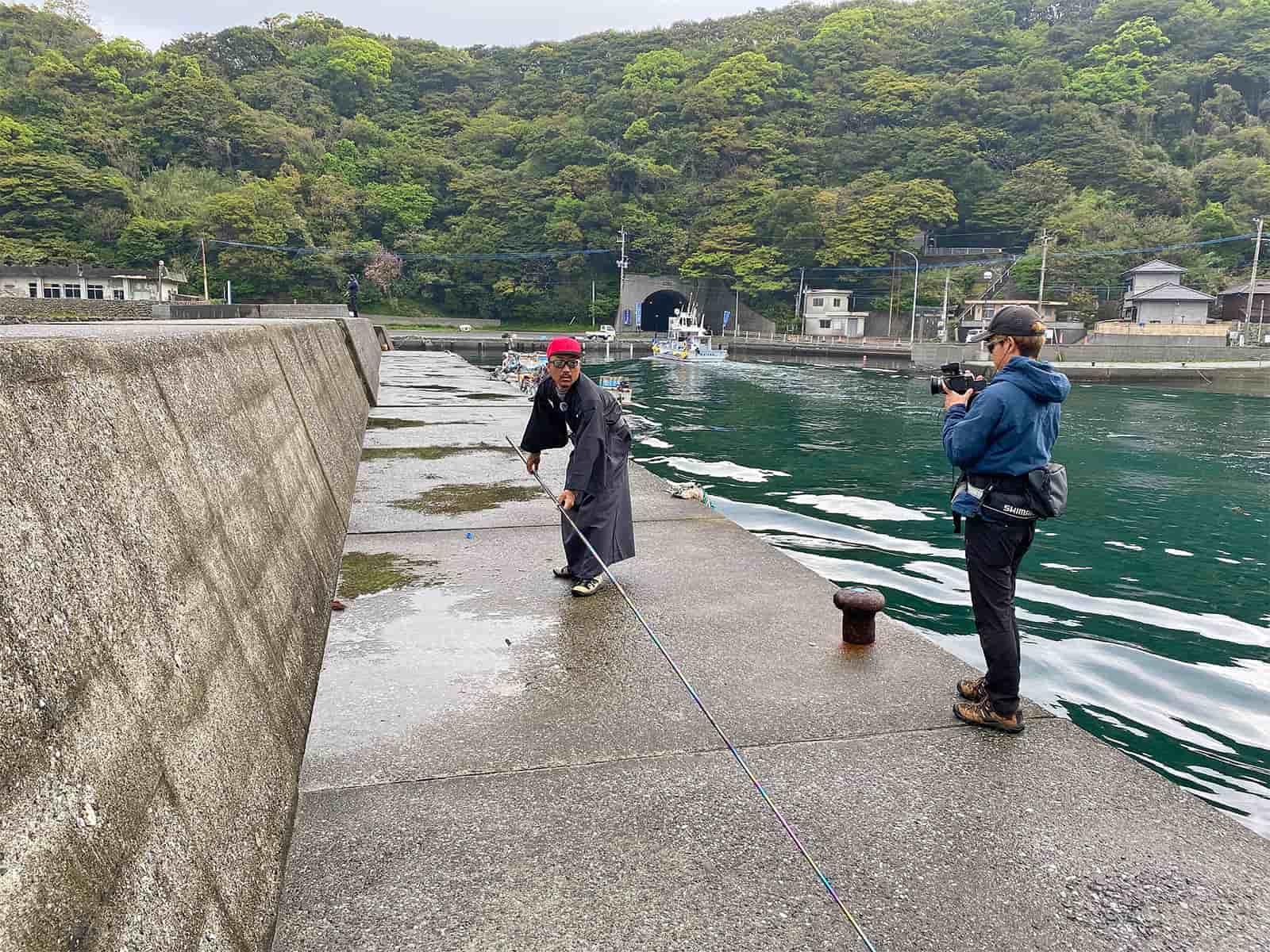 のべ竿侍とは、侍スタイルの秦さんがのべ竿でいろんな魚種を釣りまくる動画シリーズ(そのまんま!)。当然ですが、リールを使わないのべ竿なので、ルアーではなく餌釣りになります。動画ではこれまでのべ竿で様々な釣魚を斬って(釣って)きましたが、今回は、ざっくり別の九州ロケからの流れで、大分県でコブダイを釣るのが目的になりました。