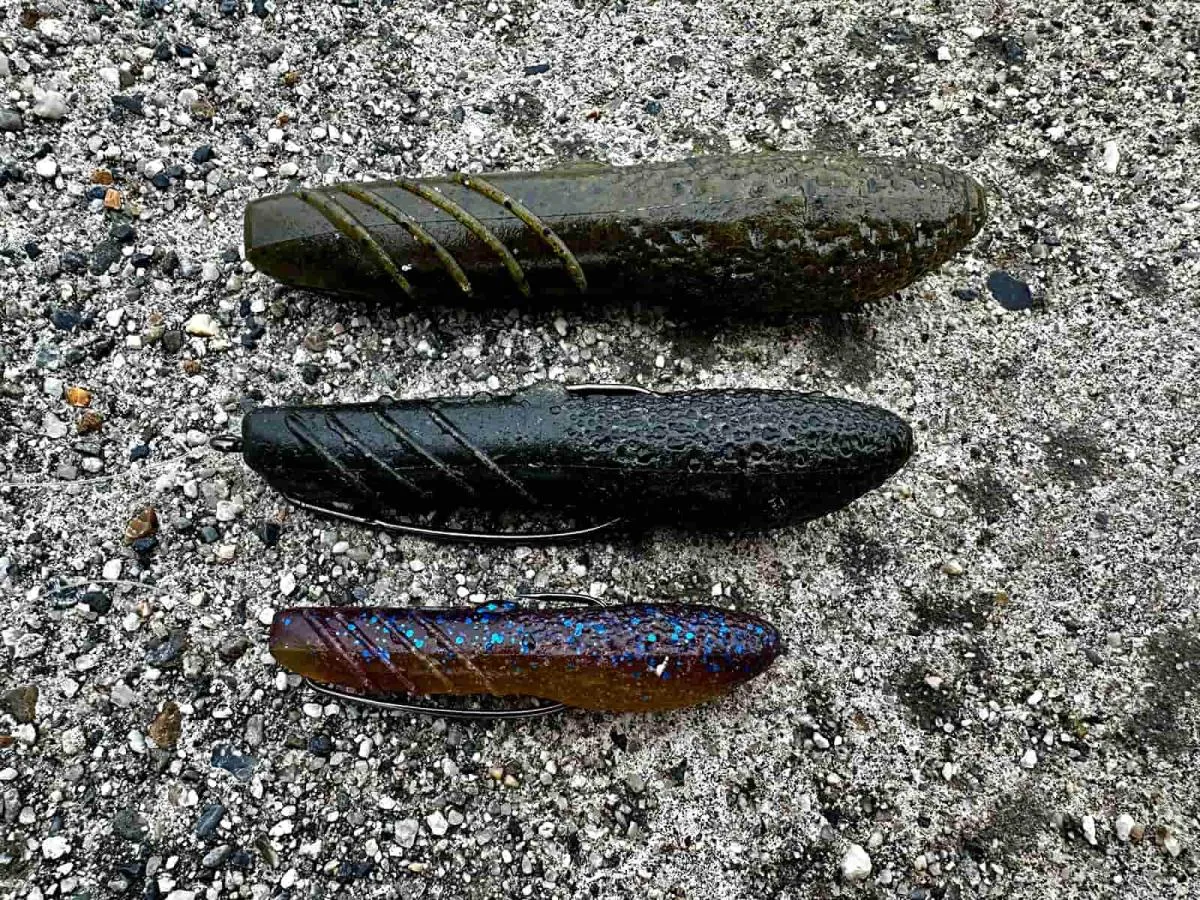 また、フロロカーボンといっても柔らかい糸、硬い糸があるが、おすすめは後者。柔らかい糸は伸びやすいので、ロッドでアクションをつけた際に、ロングキャストした先にあるカバースキャットをクイックに動かすのが難しいのだ。なお、2.5インチはフロロ10~12ポンドがおすすめ。