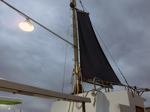 2週続けての大雪にはビックリ。釣りの予定も番狂わせとなった2月17日の深夜、残雪を気にしながら千田港に向かった。横須賀から湾岸道路→アクアライン→館山自動車道→国道410号・フラワーラインを走って、2時間30分ほどで千田港に到着、富津館山道路のおかげで随分と近くなった。この日は釣友の飯妻武夫さんが同行した。『小倉丸』の待合所の前が駐車場だが、6時には私を含め4台の車が駐車した。お茶を頂き、受け付けを済ませていざ出陣。釣り座は、予約の早い者順で、好きな場所を指定出来るシステムになっている。釣り人は4人なので、左側片舷だけとして、ミヨシ(船首)には、前日も来たと言う小高英夫さん(館山市)が、トモ(船尾)には丸 偉夫さん(富津市)が予約していた。空いていた胴の間(中央)のミヨシ側に同行の飯妻さん、トモ側に私が入った。明るくなった6時半過ぎ、釣り場が近いのだろうスパンカーが張られ、舫い綱が解かれた。