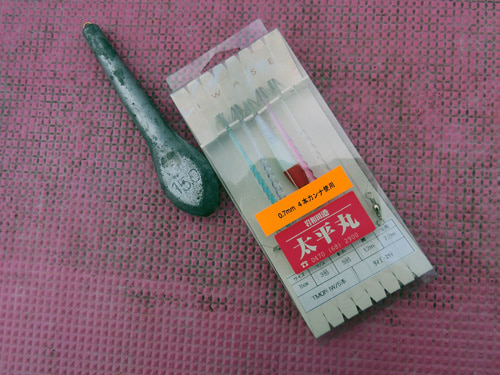 タックルは、1.7mのヤリイカ専用ロッドに中型電動リール(PEライン4号)。「イカ仕掛けは直結!」と決めていたので、11cmプラヅノの直結仕掛け。ビギナーレベルのくせに欲張って12本のツノを投入すると、高いウネリの影響に戸惑った。ウネリで負荷が変化、アタリを取るのが難しい。この状況で小さなヤリイカを掛けるのは至難の業に思えた。暫くアタリの無い(分からない?)状況が続いた。