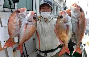 千葉県・大原沖の一つテンヤマダイ、浅場で釣れ過ぎ!!
