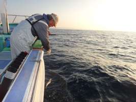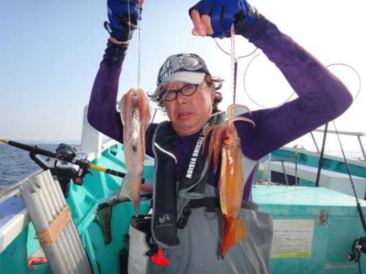 時々、直結仕掛けのイカヅノにアジやサバが掛かって来る。160~170mの指示ダナでシャクっていると、“ガクガク”と竿を揺さぶる。イカとは違うアタリ。朝一番、アジ、サバは海面下30~60mで釣れていた魚影が、明るくなるにつれて、海底近くまで下がり、イカヅノにアタックし、横腹にツノが刺さって上がって来る。左舷の阿部さんが、スルメイカを取り込んだところで、沖上がりの時間になった。アジ&スルメイカの釣果スルメイカの釣果は2~32杯。アジは誰もが入れ食いで17~51匹。その他にも、ウルメイワシやサバでクーラーボックスは一杯になり、充分なお土産になった。船長は、「今日は潮が動かず、スルメイカが皆に回らなかったが、海水温が高位安定する7月から外房の“夏イカ”の本格シーズンに入る。束釣り(100杯以上)も有りますよ」と、今後のスルメイカに太鼓判を押す。“1粒で2度美味しい”アジ&スルメイカのリレー船。出掛けて見ては如何だろう。