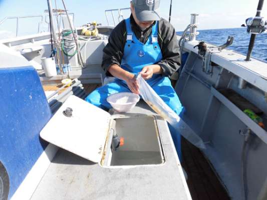 今シーズンのヤリイカについて大澤洋輔船長に聞いた。「今年は例年よりスタートが早かったけど、まだ数や型にムラがある」とのことで、石花海名物の“パラソル級”と呼ばれるビッグサイズが釣れるのはこれからのようだ。数を釣るコツは「なるべくおろしたてのツノを使う」、「仕掛けをシンプルにして、なるべく“金具”を用いない」、「仕掛けの投入を早くする」、「釣れているタイミングに釣れなかったら、50mくらい巻いて再び落とす」、「釣れる時合に古い仕掛けを使わない」の五箇条と、「朝に釣れなくてもメゲない」ことが大切だそうで、確かにこの日もバリバリ釣れるタイミングは、開始から2時間以上経った後のことだった。「悠々として急げ」と言ったのは開高健だが、このペース配分を持って挑むのが、石花海のヤリイカには得策のようだ。これからの季節、ひと潮ごとに大きくなる石花海のヤリイカ。寒さや海況は厳しくなるが、充実の装備とコルク張りのデッキが温かい「博栄丸」で、ヤリイカ釣りを快適に楽しく、満喫していただきたい。