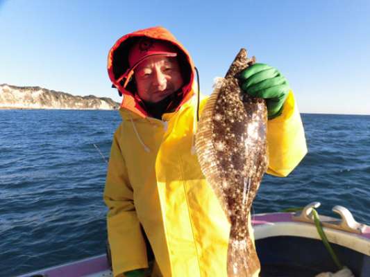 今年はイワシが少ないため、浅場の釣りがメインになると言う大野利広船長。コツは根掛かりをしないようにマメにタナを取ることと、横に走るのでサメと間違ってラフに扱わないことだそうだ。この日も船縁でハリス切れするシーンがあり、まだまだ大物の気配が漂う岩和田沖。根周りのアジを食べている寒ビラメは、身も締まって脂のまわりも実に程よいので、是非ポン酢と紅葉おろしでご賞味頂きたい。風光明媚でアタリの取りやすいこのエリアのヒラメ釣り。あなたの釣り自慢のページを増やすには、格好の機会かも知れない。