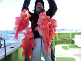 ピンチから一転、2~3.8kgを0~5匹という釣果で幕を閉じたこの日の釣り。福田稔船長にこの釣りのコツを尋ねると「まずはタナ取りですね。小まめに底立ちを取って、ベストのタナを繊細に取り続けることが大切」とのこと。「シケや寒暖の間隔が狭くて今は魚が落ち着かない。ナギが続けば期待できると思います」と楽しみな展望を聴かせてくれた。上乗りの斉藤さんは投入の準備が間に合わなそうだと、そっと手伝ってくれたり、元釣りガールの女将さんや常連の皆さんも非常に親切で、私のような深場釣りビギナーにも大変心強い銚子外川港『福田丸』。「メヌケはこれからが本番になります、是非いらいして下さい」。そう語る船長の言葉には、この海を知る人の確信と信念が感じられた。