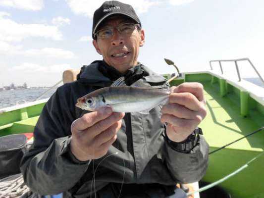 その後、再び横浜ベイブリッジ下へ移動。私も竿を出した。指示ダナ2mから50cm位ゆっくり誘い下げると、プルプルッとアタリ。上がって来たのは小ぶりだが美味しそうな“金アジ”。アタリが遠い時は、マメに底を取り直すのと、タナを探るイメージで誘いを入れてみるのもよいかも知れない。前日のシケと冷え込みの影響か、やや食い渋ったものの終わってみればトップ40匹とまずまずの釣果。魚影が濃い事は確実なので天候が安定すれば、釣果も確実に伸びるはず。目前に迫ったGWにファミリーで出掛けてみては如何だろう。