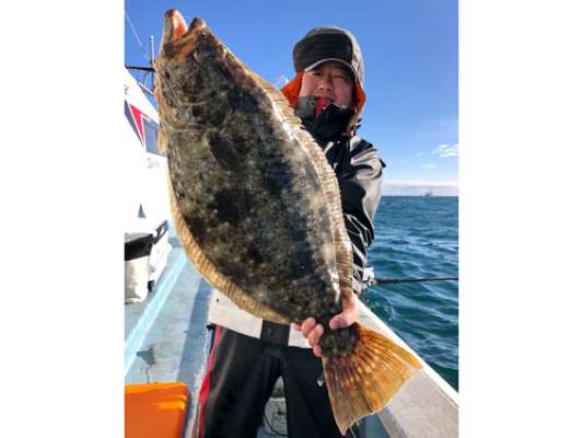 冬場には珍しい急激な海水温“上昇”で、ヒラメは少々ご機嫌斜めだったこの日。竿頭は良型ばかり4匹を揃えた宮内忠治さん(八千代市)。「今年のヒラメは数が上がってるけど、少しずつイワシが回って来てるんで、時々デッカイのが交じる」と言っていた船長の言葉通り、取材後日には5.6kgの大ビラメも上がり、竿頭14匹の爆釣も記録されている。数もサイズも大満足の寒ビラメ釣り、是非、体験して頂きたい。