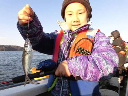 皆の桶にお土産が出来たのを見届けた船長は、少し深いポイントへ船を移動させた。狙いはこの時期特有のたっぷり脂の乗った大アジだ。しかし、この日は残念ながら小型のアジが最後まで優勢で大アジは顔を見る程度で終了。だが、狙い通りの数釣りは存分に楽しめて黒沼さんが54匹でトップ。今や東京湾のブランド魚の仲間入りをしたアジ。通年釣れ続くので今年も存分に楽しんで頂きたい。