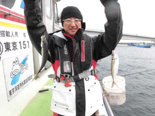 この日の釣果は、高橋さんが18~30cmを164匹釣って竿頭。高橋さんの釣り仲間の羽原さんが124匹、大ドモ(船尾)の長谷川さん(中央区)が50匹前後。左舷側はミヨシの方が108匹、その隣が私で65匹、3番目の鈴木さん(大田区)と大ドモの望月さん(大田区)が大体120~130匹とのこと。なんと乗船した7人中5人が束(100匹)オーバーというもの凄い釣果になった。「絶好調のアジ釣りですが、まだまだ続きそうですよ。“中アジ”がかなり交じっていますし、数型ともに今後も期待できますね」と船長。LTアジ、今がチャンスだ!