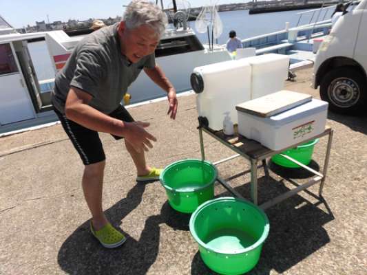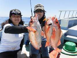 朝マヅメから9時までは型狙いの海域、後半は数が釣れる海域に、という作戦が見事的中した三橋正幸船長。アカムツ釣りの道具立てについて訊いた。「今は柔らかめの竿の方が良いかな-って気はしますね。バラシが少ない。(魚を待っている時は)7:3くらいでやっていて、アタリがあって食わせたら6:4くらいになるような竿が。柔らかいって言っても、あまりに粘りの無い竿はダメだね」と船長。また、大きなアカムツを釣るための心得を尋ねてみた。「なるべく底を切った方が良いですよね。サイズの良いアカムツは大体、上バリに掛かって来るので。捨て糸が短いとドンコやユメカサゴ、サメが多くなるし、アカムツが釣れても小さいことが多い。だからサイズ狙いの人は捨て糸を長く取ってください」とのこと。数を釣りたいか、型を狙いたいかは釣り人それぞれの好みだが、大きな個体ほど上バリに食ってくるのは、この日の傾向でも顕著だったので、この提言はメモして置きたい。波崎沖のアカムツ、最盛期はこれから!この日の竿頭はアカムツ2匹と多彩な“ゲストフィッシュ”を釣った常連の佐藤さん(茨城県美浦)と、寒猫根初アタックの塚瀬さん。この日は釣果の谷間で難しい一日だったが、それでも“本命”アカムツを乗船の全員が手にするという快挙。さらに取材後に釣況は回復、再び竿頭“ツ抜け”達成の情報が届いている。「サイズの良いのが産卵で寒猫に入ってくるので、型も数もこれから良くなって行くんじゃないですかね。これからが一番良いシーズンなんじゃないかな」と船長も太鼓判を押す。この夏こそ記憶に残る大物との出会いと、忘れられない高級魚の美味を心ゆくまでお楽しみ頂きたい。