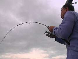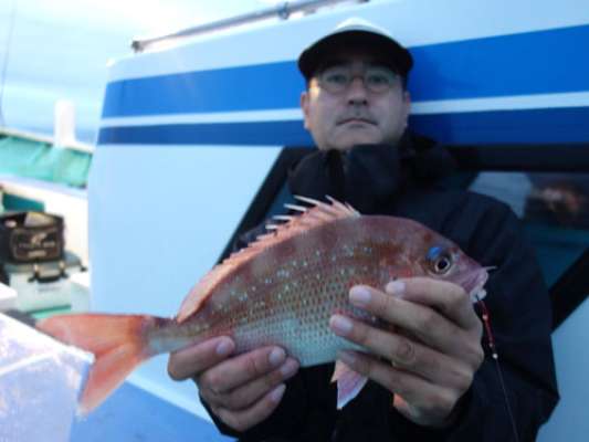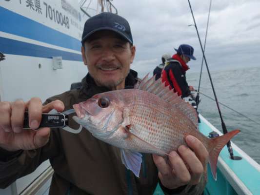 何度か流し替えの後“ゲスト”も含めてポツリポツリと追加されたが、後半は潮止まりで沈黙。定刻の11時に納竿となった。今回乗船した午前船の釣果は、0.4~1.6kgのマダイ1~5匹、“ゲスト”にイナダ、マハタなど全員が型を見られ満足な様子。正体は見られなかったが突然の大物がヒットしたりと、ドキドキワクワクの一つテンヤ。この秋からの沖釣り入門にぜひオススメしたい。
