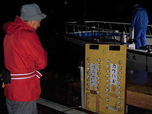 「今やっと釣れてきてます」と船長も嬉しそうなこの日の竿頭は鶴岡さんの30匹。シケ後の10月11日には釣果41匹をマークしたことも書き加えて置こう。20cm以上の個体には立派なキモ(肝臓)が詰まっているので、肝醤油で頂く刺し身や肝和えは極上の味覚。今期は数釣りも大型狙いも楽しみな内房・勝山沖のカワハギ。防寒着いらずで餌付けの手もかじかまない今こそ、腕利きのベテランには勿論、これからカワハギにチャレンジしてみたいビギナーの方々にも強くお薦めしたい。
