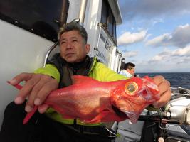 11時50分頃沖上がり。結果はキンメダイ0.7~1.2kgが2~9匹。竿頭は山口さんと清水さんの2人。「今日はイルカが海面から底までいて、キンメが底でハリ掛かりする傍から横取りしているようでした。イルカがいない日に当たればもっと数は伸びます」と船長。実際、取材後の12月11日には波穏やかでイルカ被害もなく12~24匹の好釣果だった。“新島沖のブランド・キンメ”の味は別格だ。『番匠高宮丸』では通年キンメダイ船を出船している。釣り納めに、また、新年明けてからの初釣りに、是非挑戦して頂きたい。